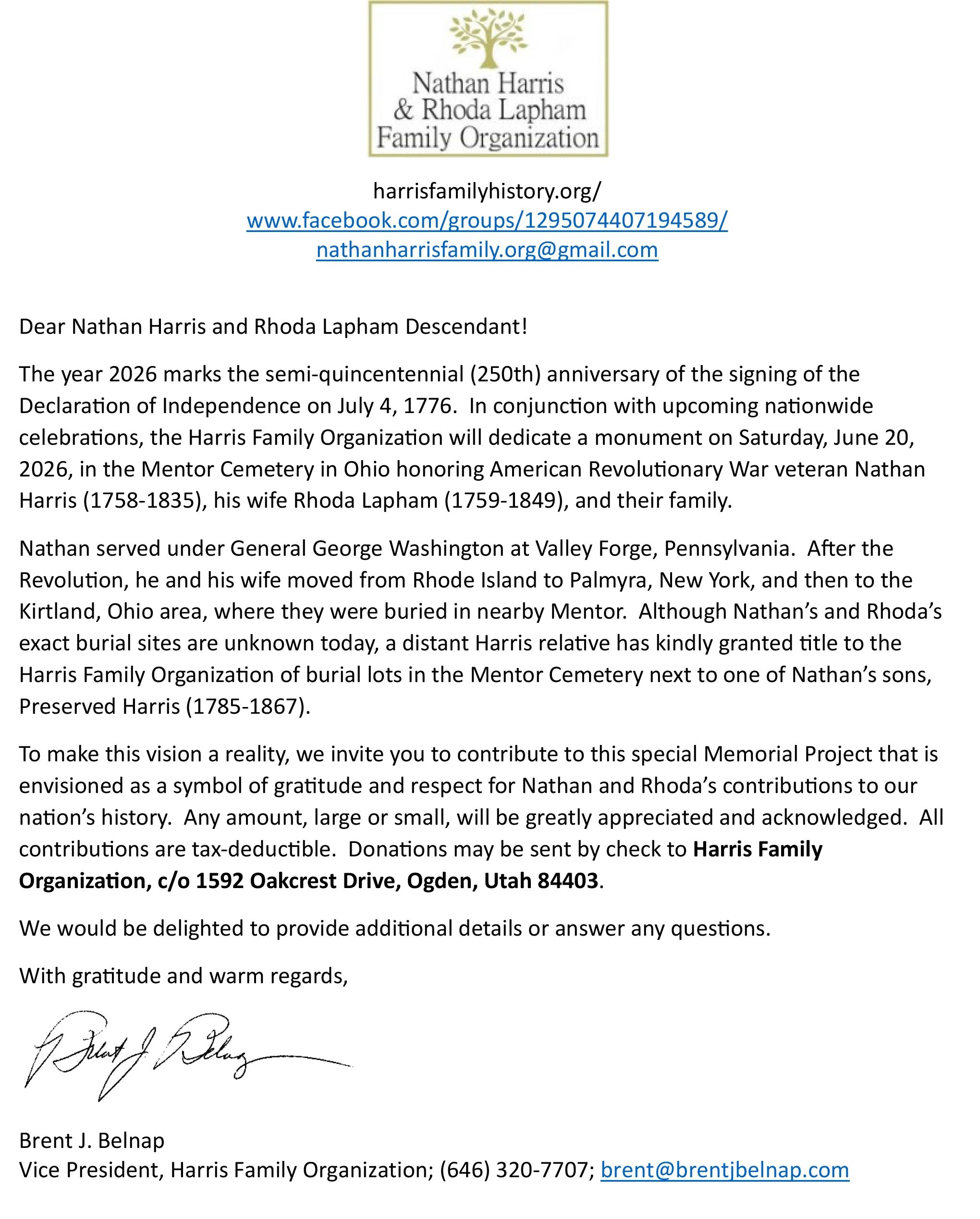 Nathan and Rhoda lived their final years with their son Preserved Harris at his Home in Mentor, OH